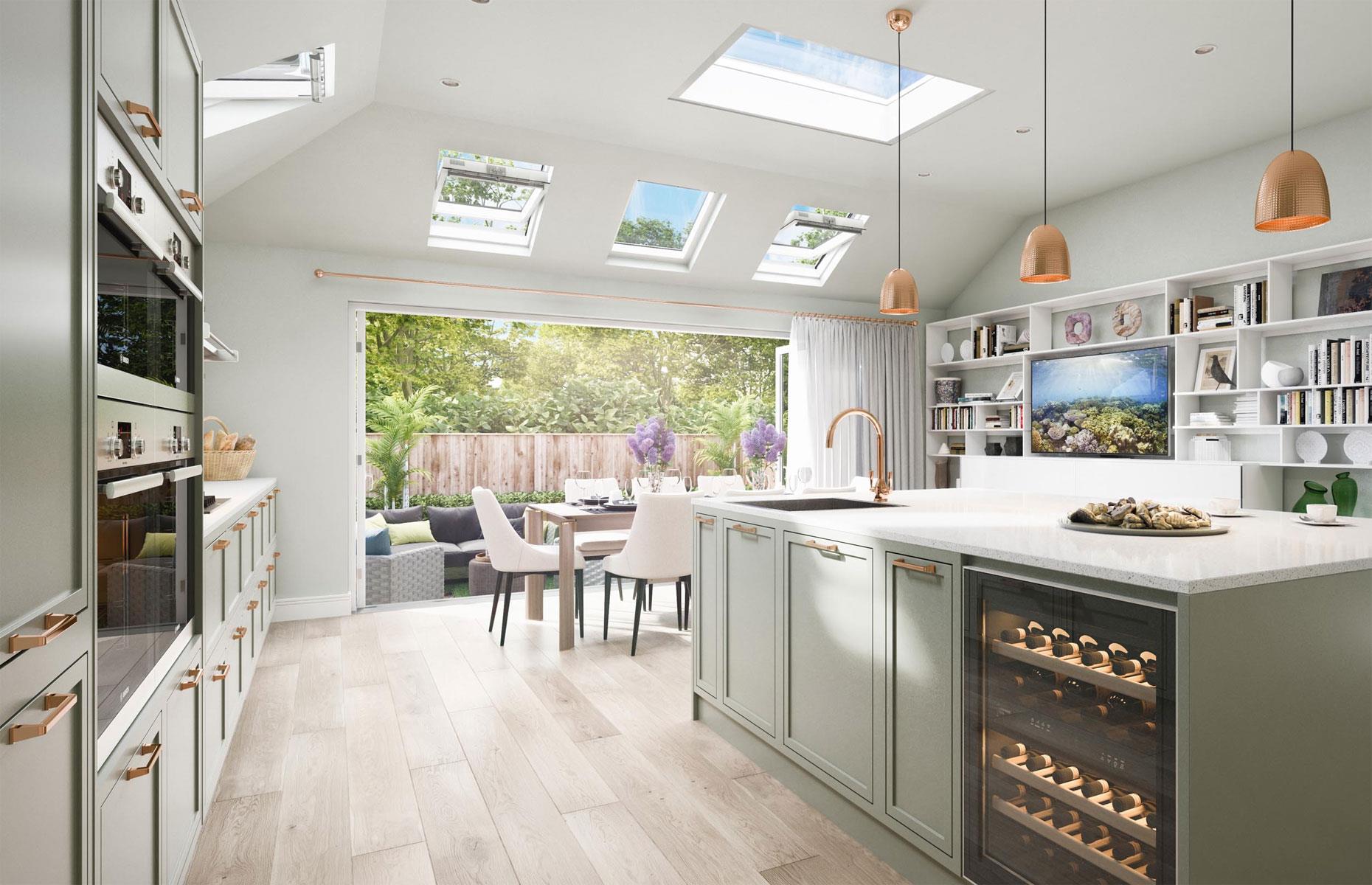 The finished extension provides a large open-plan kitchen and dining area ideal for modern family living.