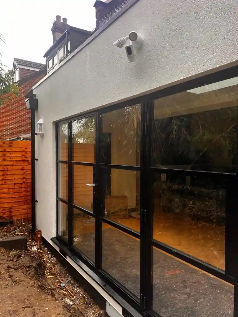 This project involved the construction of a 26.46 square meter wrap around extension for our clients. The primary need was to create a modern, thermally efficient additional space. The solution was a structurally robust, steel-framed extension finished with a sleek grey silicon render and high-performance glazing, all built on a ground screw foundation system.
