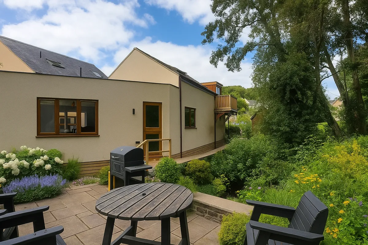 The core of the build involved extending the pitched roof to accommodate a comfortable second bedroom, as well as adding a dormer with a balcony to maximise the picturesque views. This required significant roof alterations and complex scaffolding to ensure structural integrity throughout the build. On the first floor, we constructed a flat EPDM roof extension to create a bright, open-plan living area.